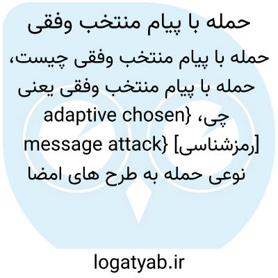 {adaptive chosen message attack} [رمزشناسی] نوعی حمله به طرح های امضا که در آن مهاجم به کمک امضاهای دریافتی بر روی تعدادی پیام منتخب اقدام به جعل امضا بر روی پیام مورد نظر کند