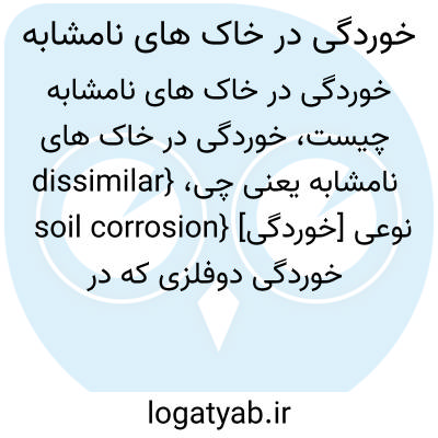 {dissimilar soil corrosion} [خوردگی] نوعی خوردگی دوفلزی که در لوله های مدفون در زمین به دلیل اختلاف در pH و اندازه و دانه بندی و ترکیبات شیمیایی نوع خاک ایجاد می شود