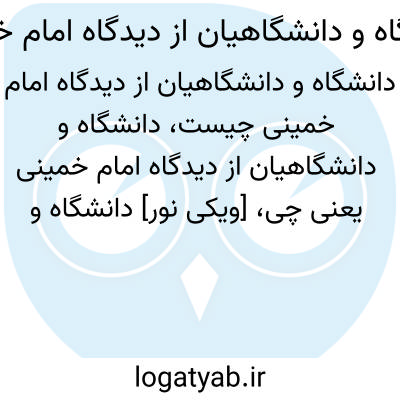 [ویکی نور] دانشگاه و دانشگاهیان از دیدگاه امام خمینی (س). دانشگاه و دانشگاهیان از دیدگاه امام خمینی(س)، مجموعه ای از نظرات و دیدگاه های امام خمینی درباره دانشگاه و دانشگاهیان است که توسط حسنعلی احمدی فشارکی تدوین و در گروه اجتماعی حوزه معاونت پژوهشی مؤسسه تنظیم و نشر آثار امام، استخراج و تنظیم شده است.
