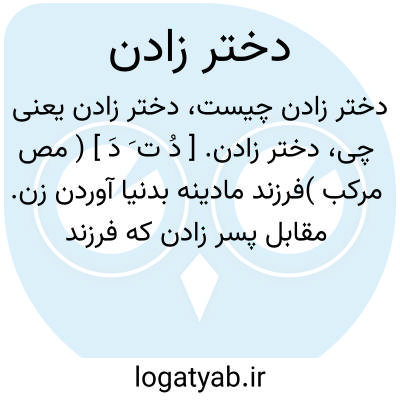 دختر زادن. [ دُ ت َ دَ ] ( مص مرکب )فرزند مادینه بدنیا آوردن زن. مقابل پسر زادن که فرزند نرینه آوردن است. اجزاء. ( تاج المصادر بیهقی ).