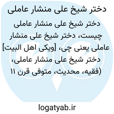 [ویکی اهل البیت] دختر شیخ علی منشار عاملی، (فقیه، محدیث، متوفی قرن 11 ه)، همسر شیخ بهایی، از زنان فقیه و محدث شیعه در قرن یازدهم هجری بود.پدرش در زمان سلطنت شاه طهماسب اول صفوی (م 984 ه)، شیخ الاسلام اصفهان بود.وی تنها فرزند خانواده بود، نزد پدرش فقه و حدیث فرا گرفت و با شیخ بهایی ازدواج کرد.روزی که به خانه همسرش رفت تعداد زیادی کتاب در علوم و فنون مختلف به همراه جهازش با خود برد.صاحب ریاض به نقل از علما و فضلای سالخورده و معتمد که وی را درک کرده بودند می نویسد: او در کودکی فقه و حدیث و علوم دیگر را تدریس می کرد و زنان نزد او درس می خواندند.به گفته برخی از فضلای آن زمان، وی دانش فراوان و فضل زیادی داشت.زمانی که پدرش درگذشت همه اموال و املاک، از جمله کتابهای او که چهار هزار جلد می شد به دخترش به ارث رسید.بسیاری از این کتابها را دختر منشار از هند با خود به همراه آورده بود.وی مدتی پس از مرگ همسرش زنده بوده است.
