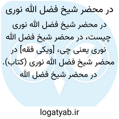 [ویکی فقه] در محضر شیخ فضل الله نوری (کتاب). در محضر شیخ فضل الله نوری، اسناد حقوقی عهد ناصری تالیف منصوره اتحادیه و سعید روحی است که به فارسی و مشتمل بر خلاصه معاملات و اسناد تنظیم شده در نزد شیخ فضل الله نوری که تحریر این اثر را از ربیع الثانی سال ۱۳۰۳ ه. ق شروع کرده و خلاصه فعالیت های خود را تا اواسط سال ۱۳۰۶ ه. ق در آن مندرج ساخته است.