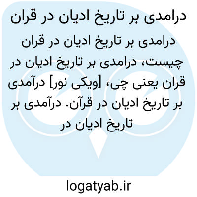 [ویکی فقه] درآمدی بر تاریخ ادیان در قرآن (کتاب). «درآمدی بر تاریخ ادیان در قرآن» نوشته دکتر عبد الرحیم گواهی و به زبان فارسی است که به بررسی تاریخ ادیان از دیدگاه قرآن کریم می پردازد.