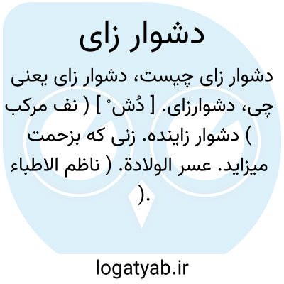 دشوارزای. [ دُش ْ ] ( نف مرکب ) دشوار زاینده. زنی که بزحمت میزاید. عسر الولادة. ( ناظم الاطباء ). بر زنی که هر بار سختی کشد در وضع حمل اطلاق شود. ( شعوری ج 1 ص 454 ).