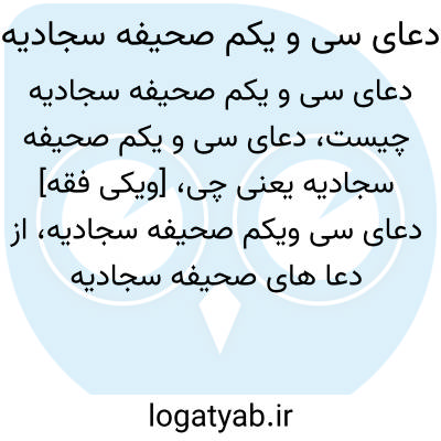 [ویکی شیعه] دعای سی ویکم صحیفه سجادیه، از دعاهای صحیفه سجادیه امام سجاد (ع). این دعا در ۱۲ فراز تنظیم شده و موضوع اصلی آن توبه است.
