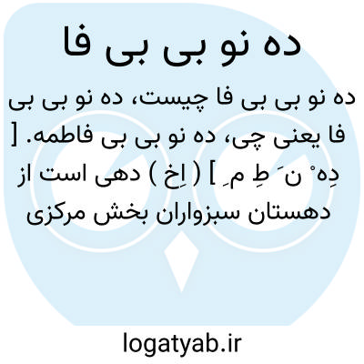 ده نو بی بی فاطمه. [ دِه ْ ن َ طِ م ِ ] ( اِخ ) دهی است از دهستان سبزواران بخش مرکزی شهرستان جیرفت،. واقع در 28هزارگزی جنوب خاوری سبزواران دارای 178 تن سکنه. آب آن از قنات تأمین می شود. ( از فرهنگ جغرافیایی ایران ج 8 ).