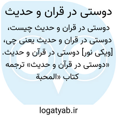 [ویکی نور] دوستی در قرآن و حدیث. «دوستی در قرآن و حدیث» ترجمه کتاب «المحبة فی الکتاب و السنة» نوشته آیةالله محمدی ری شهری (متولد 1325ش) با همکاری محمد تقدیری است که توسط سید حسن اسلامی به فارسی ترجمه شده است.