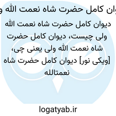 [ویکی نور] دیوان کامل حضرت شاه نعمت‎الله ولی، اثر سید نورالدین نعمت‎الله بن عبدالله بن محمد، معروف به شاه نعمت‎الله ولی، مهم‎ترین اثر منظوم وی، شامل قصاید، غزلیات، قطعات، مثنوی‎ها و رباعیات است که بالغ بر ده هزار بیت می‎باشد.