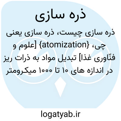 {atomization} [علوم و فنّاوری غذا] تبدیل مواد به ذرات ریز در اندازه های 10 تا 1000 میکـرومتر