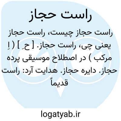 راست حجاز. [ ح ِ ] ( اِ مرکب ) در اصطلاح موسیقی پرده حجاز. دایره حجاز. هدایت آرد: راست قدیماً پرده ( دایره ) بوده است مانندراست پنجگاه و غیره. و حجاز نیز یکی از ملحقات دستگاه شور است. ( از مجمع الادوار نوبت سوم ص 98 و 101 ).