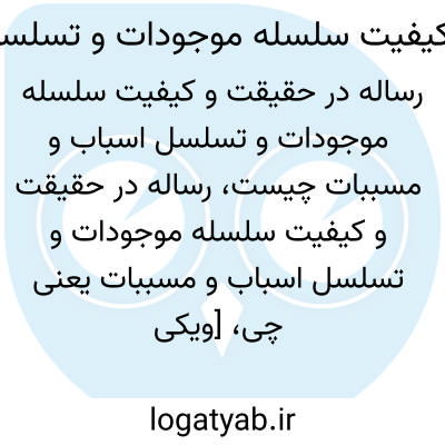 [ویکی نور] رساله در حقیقت و کیفیت سلسله موجودات و تسلسل اسباب و مسببات نام رساله ای است که مرحوم شیخ الرئیس ابوعلی حسین بن عبدالله بن سینا، در موضوع خلقت موجودات، به زبان فارسی و برای ارائه نظریه اسلام در این زمینه که متفاوت با نظریات دانشمندان یونانی و دیگر اندیشمندان غیر مسلمان است، در قرن چهارم هجری، به رشته تحریر درآورده است.