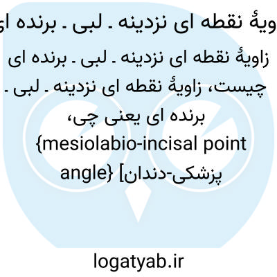 {mesiolabio-incisal point angle} [پزشکی-دندان پزشکی] زاویۀ نقطه ای حاصل از اتصال سطوح نزدینه و لبی و سطح بُرندۀ دندان های قدامی