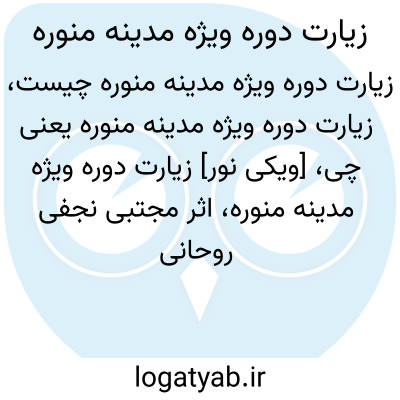 [ویکی نور] زیارت دوره ویژه مدینه منوره، اثر مجتبی نجفی روحانی (متولد 1362ش) است که در آن، مساجد و اماکن مهمّ تاریخی مدینه را به صورت متنی و تصویری، معرفی و موقعیت محلی آن و همچنین فاصله آن تا گنبد سبز حرم پیامبر(ص) را تعیین کرده است.