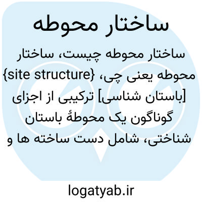 {site structure} [باستان شناسی] ترکیبی از اجزای گوناگون یک محوطۀ باستان شناختی، شامل دست ساخته ها و سازه ها و ساختارها