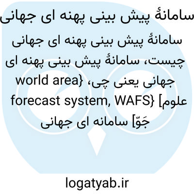 {world area forecast system, WAFS} [علوم جَوّ] سامانه ای جهانی که ازطریق آن مراکز پیش بینی پهنه ای و منطقه ای، پیش بینی های هواشناختی هوانوردی مسیر را در قالب های استانداردشدۀ یکنواخت تهیه می کنند