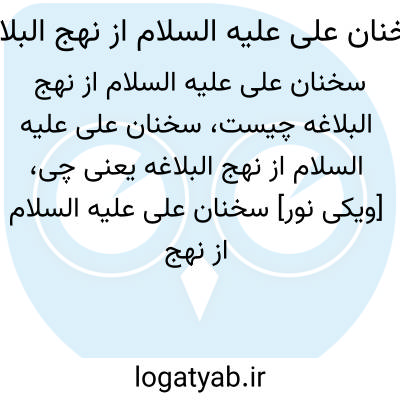 [ویکی نور] سخنان علی علیه السلام از نهج البلاغه (کمپانی). «سخنان علی(ع) از نهج البلاغه»، اثر فضل الله کمپانی، ترجمه و توضیح مختصری از کتاب نهج البلاغه پرداخته است.