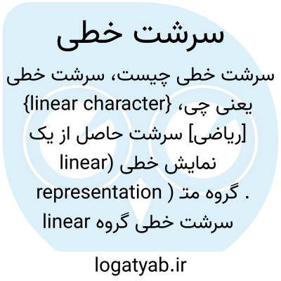 {linear character} [ریاضی] سرشت حاصل از یک نمایش خطی (linear representation ) گروه متـ. سرشت خطی گروه linear character of a group