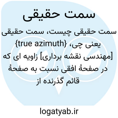 {true azimuth} [مهندسی نقشه برداری] زاویه ای که در صفحۀ افقی نسبت به صفحۀ قائم گذرنده از قطب سماوی و صفحۀ قائم گذرنده از شیء مشاهده شده اندازه گیری شود متـ. سمت نجومی astronomical azimuth