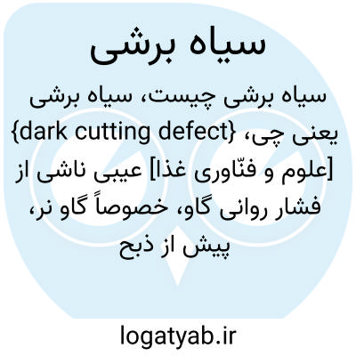 {dark cutting defect} [علوم و فنّاوری غذا] عیبی ناشی از فشار روانی گاو، خصوصاً گاو نر، پیش از ذبح که سبب تیره شدن رنگ گوشت و کاهش کیفیت آن میشود