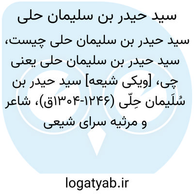 [ویکی شیعه] سید حیدر بن سُلَیمان حِلّی (۱۲۴۶-۱۳۰۴ق)، شاعر و مرثیه سرای شیعی اهل حله در قرن سیزدهم و اوایل چهاردهم قمری و از نوادگان زید بن علی.