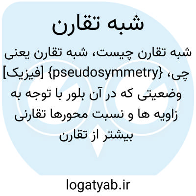 {pseudosymmetry} [فیزیک] وضعیتی که در آن بلور با توجه به زاویه ها و نسبت محورها تقارنی بیشتر از تقارن واقعی از خود نشان می دهد