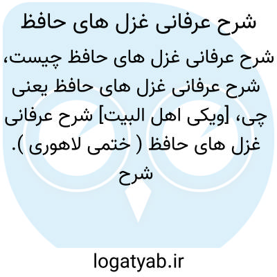 [ویکی اهل البیت] شرح عرفانی غزل های حافظ ( ختمی لاهوری ). شرح عرفانی غزل های حافظ تالیف ابوالحسن عبدالرحمن ختمی لاهوری در قرن یازدهم هجری قمری است مولف این کتاب را در چهار جلد نگارش کرده است شرح دارای آهنگ روح نواز و لطیف عرفانی است شرح ختمی لاهوری در عرفان اسلامی بر اساس نکات عرفانی و عشق عارفانه بیان شده است ختمی لاهوری شرح عرفانی را با آیات قرآن , احادیث اهل سنت و سخنان عارفان بزرگ و اشعار عرفانی همراه کرده است این شرح از شروح مهم عرفانی بر غزلیات حافظ شیرازی است