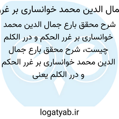 [ویکی نور] شرح محقق بارع جمال الدین محمد خوانساری بر غُرر الحکَم و دُرَر الکَلم. «شرح محقق خوانساری بر غررالحکم و دررالکلم»، از بهترین شروح فارسی کتاب شریف غررالحکم و غررالکلم، به قلم جمال الدین محقق خوانساری است. مقدمه و تصحیح استاد محدث ارموی بر ارزش اثر افزوده است.