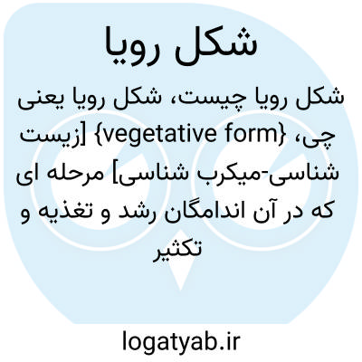 {vegetative form} [زیست شناسی-میکرب شناسی] مرحله ای که در آن اندامگان رشد و تغذیه و تکثیر فعالانه دارد متـ. یاختۀ رویا vegetative cell