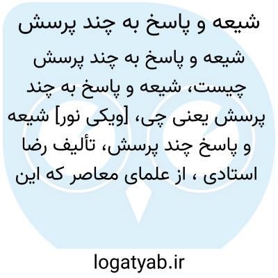[ویکی نور] شیعه و پاسخ چند پرسش، تألیف رضا استادی، از علمای معاصر که این کتاب در یک جلد به زبان فارسی، پیرامون بعضی از مسائل اختلافاتی که بین مذهب شیعه و اهل سنت وجود دارد، نوشته است.