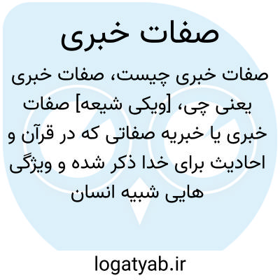 [ویکی شیعه] صفات خبری یا خبریه صفاتی که در قرآن و احادیث برای خدا ذکر شده و ویژگی هایی شبیه انسان را برای خدا ثابت می کند، مانند وجه الله، ید الله، استواء خدا بر عرش.