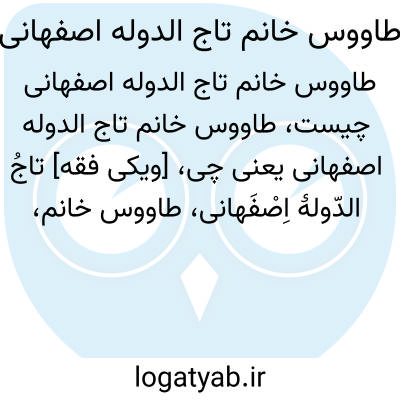 [ویکی فقه] تاجُ الدّولۀ اِصْفَهانی، طاووس خانم، ادیب، شاعر و خطاط سدۀ ۱۳ق/۱۹م و یکی از زنان فتحعلی شاه قاجار (سل ۱۲۱۲-۱۲۵۰ق) بود.