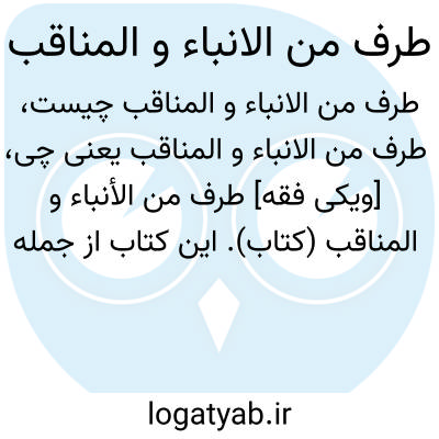 [ویکی فقه] طرف من الانباء و المناقب (کتاب). این کتاب از جمله آثار سید بن طاووس (م ۶۶۴) است که مشتمل بر اخبار و حکایاتی در باره اهل بیت و مناقب امیرالمؤمنین علیه السّلام است.
