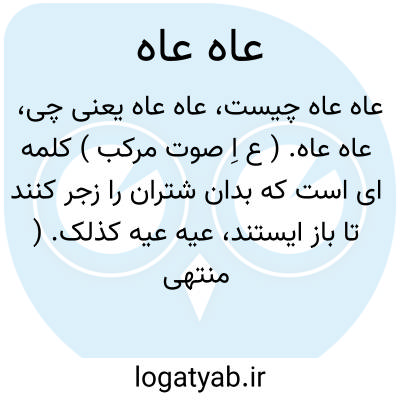 عاه عاه. ( ع اِ صوت مرکب ) کلمه ای است که بدان شتران را زجر کنند تا باز ایستند، عیه عیه کذلک. ( منتهی الارب ) ( آنندراج ).