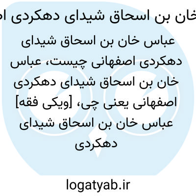 [ویکی فقه] عباس خان بن اسحاق شیدای دهکردی اصفهانی، از شعراء و دانشمندان عالی قدر قرن چهاردهم هجری در اصفهان بوده است.