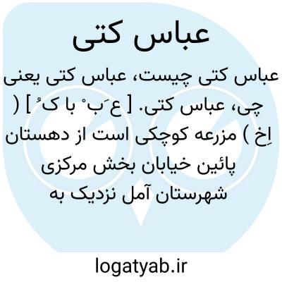 عباس کتی. [ ع َب ْ با ک ُ ] ( اِخ ) مزرعه کوچکی است از دهستان پائین خیابان بخش مرکزی شهرستان آمل نزدیک به آبادی انجپل. ( از فرهنگ جغرافیائی ایران ج 3 ).