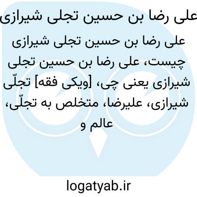 [ویکی فقه] تجلّی شیرازی، علیرضا، متخلص به تجلّی، عالم و شاعر قرن دهم و یازدهم می باشد.