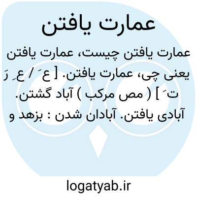 عمارت یافتن. [ ع َ / ع ِ رَ ت َ ] ( مص مرکب ) آباد گشتن. آبادی یافتن. آبادان شدن: