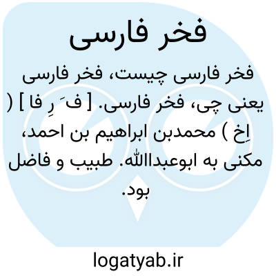 فخر فارسی. [ ف َ رِ فا ] ( اِخ ) محمدبن ابراهیم بن احمد، مکنی به ابوعبداﷲ. طبیب و فاضل بود. به سال 622 هَ. ق. / 1225 م. درگذشت. او را در اصول کلام تصنیفاتی است. اصل وی از شیراز بود و در مصر سکونت گزید و همانجا درگذشت. ( از اعلام زرکلی ج 3 ص 841 ).