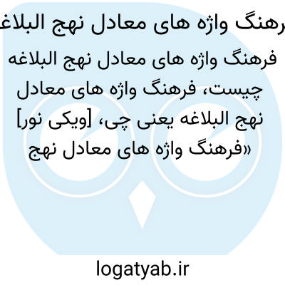 [ویکی نور] «فرهنگ واژه های معادل نهج البلاغه»، تألیف پژوهش گر معاصر محمد دشتی (1330ش) است که در آن واژه های معادل فارسی الفاظ نهج البلاغه گردآوری و در یک مجلد منتشر شده است. این کتاب از مجموعه آشنایی با نهج البلاغه مؤسسّه فرهنگی تحقیقاتی امیرالمؤمنین(ع) است.