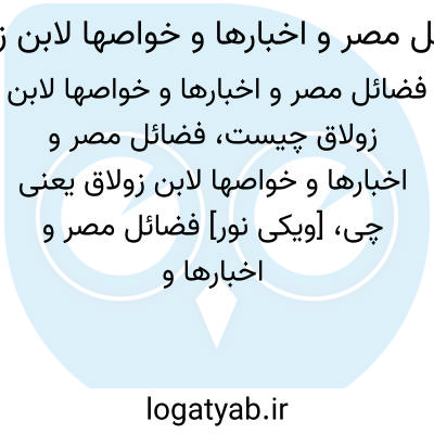 [ویکی نور] فضائل مصر و اخبارها و خواصها، اثر حسن بن ابراهیم بن حسین بن حسن بن علی بن خالد بن راشد بن عبدالله بن سلیمان بن زولاق لیثی، با تصحیح و تحقیق دکتر علی محمد عمر، به بیان فضایل و اخباری که پیرامون کشور مصر وارد شده، اختصاص یافته است.