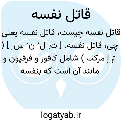 قاتل نفسه. [ ت ِ ل ُ ن َ س ِ ] ( ع اِ مرکب ) شامل کافور و فرفیون و مانند آن است که بنفسه تحلیل و نقصان پذیر باشند. ( تحفه حکیم مؤمن ). نوعی از اشق است. جنسی از آس است. ( مفاتیح ).