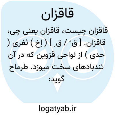 قاقزان. [ ق ُ / ق ِ ] ( اِخ ) ثغری ( حدی ) از نواحی قزوین که در آن تندبادهای سخت میوزد. طرماح گوید: یُفِج ﱡالریح فج القاقزان. ( معجم البلدان ج 7 ص 16 ). از بلوکات قزوین که در شمال غربی آن شهر واقعاست. قریه مهم آن قاقزان، مسکن ایل کاکاوند است.