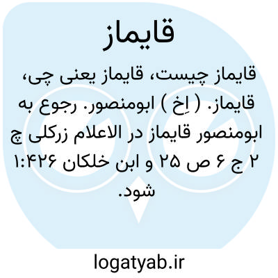 قایماز. ( اِخ ) قطب الدین از سران امراء دولت المستنجد باﷲ خلیفه است که قدرت و نفوذی عظیم یافت. ابن البلدی وزیر خلیفه از نفوذ او در دستگاه های دولتی بیمناک شده و نزد خلیفه دستگیری وی را به صلاح مقرون دانست. ابن صفیه طبیب مخصوص این داستان را به قایماز اطلاع داد و به دستیاری هم برای خلیفه که در این هنگام بیمار بود حیله ای اندیشیده و حمام کردن را مصلحت دیدند و سرانجام او را در حمامی که سه شبانه روز آن را گرم کرده بودند ساعتی نگه داشته و درها را به روی او بستند. وی در حمام جان سپرد. سپس فرزندش را به خلافت رساندند و به المستضی باﷲ لقب دادند. ( عیون الانباء ج 1 ص 258، 259 ). و رجوع به قطب الدین شود: