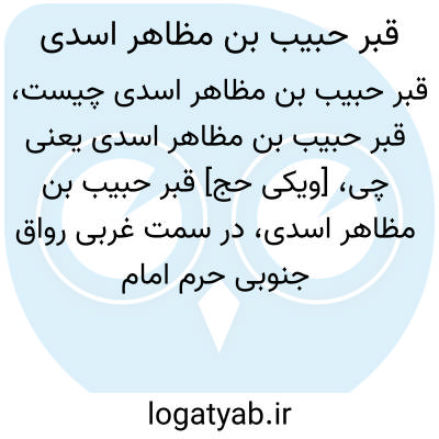 [ویکی حج] قبر حبیب بن مظاهر اسدی‏، در سمت غربی رواق جنوبی حرم امام حسین(ع)، در کربلا، در کشور عراق قرار دارد.