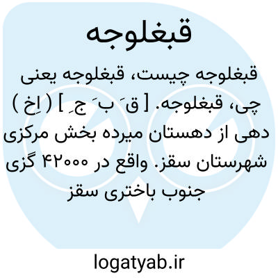 قبغلوجه. [ ق َ ب َ ج ِ ] ( اِخ ) دهی از دهستان میرده بخش مرکزی شهرستان سقز. واقع در 42000 گزی جنوب باختری سقز و 11500 گزی باختر شوسه سقز به بانه. موقع جغرافیائی آن کوهستانی، سردسیر و سکنه آن 300 تن است. آب آن از چشمه، محصول آن غلات، لبنیات، توتون، شغل اهالی زراعت و گله داری و راه آن مالرو است. ( از فرهنگ جغرافیایی ایران ج 5 ).