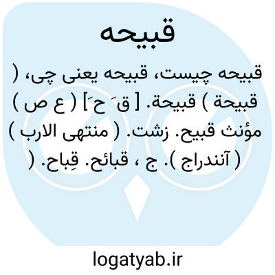 ( قبیحة ) قبیحة. [ ق َ ح َ] ( ع ص ) مؤنث قبیح. زشت. ( منتهی الارب ) ( آنندراج ). ج، قبائح. قِباح. ( منتهی الارب ): ناقة قبیحةالشخب؛ شترماده فراخ سوراخ پستان. ( آنندراج ) ( منتهی الارب ).