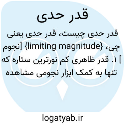 {limiting magnitude} [نجوم ] 1. قدر ظاهری کم نورترین ستاره که تنها به کمک ابزار نجومی مشاهده می شود 2. قدر کم نورترین ستارۀ مندرج در یک فهرست نجومی (astronomical catalogue )