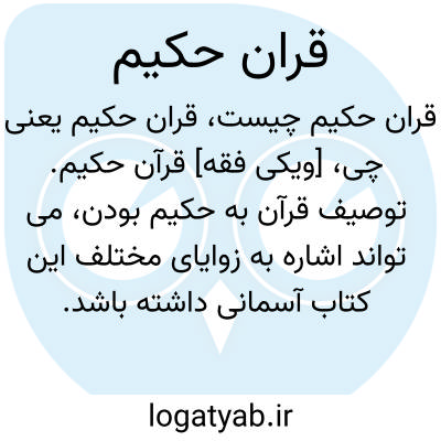 [ویکی فقه] قرآن حکیم. توصیف قرآن به حکیم بودن، می تواند اشاره به زوایای مختلف این کتاب آسمانی داشته باشد.