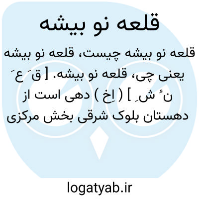 قلعه نو بیشه. [ ق َ ع َ ن ُ ش ِ ] ( اِخ ) دهی است از دهستان بلوک شرقی بخش مرکزی شهرستان دزفول، واقع در 9هزارگزی جنوب باختری شوسه شوشتر به دزفول. موقع جغرافیایی آن دشت و هوای آن گرمسیری مالاریایی است. سکنه آن 200 تن است. آب آن از رودخانه دز و محصول آن غلات، برنج و کنجد و شغل اهالی زراعت است. راه مالرو دارد و ساکنین از طایفه بختیاری هستند. ( از فرهنگ جغرافیایی ایران ج 6 ).