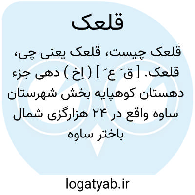 قلعک. [ ق َ ع َ ] ( اِخ ) دهی جزء دهستان کوهپایه بخش شهرستان ساوه واقع در 24 هزارگزی شمال باختر ساوه نزدیک به شاباغی. هوای آن سردسیری و سکنه آن 125 تن است. آب آن از قنات و محصول آن غلات، بنشن، انار، انجیر، بادام، گردو و سیب و شغل اهالی زراعت و گله داری و صنایع دستی آنان گلیم بافی و جاجیم بافی است. راه مالرو دارد. مزارع چنار و یک مزرعه کوچک جزء این ده است. ( از فرهنگ جغرافیایی ایران ج 1 ).